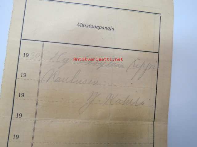 | Saatavilla | 1 kpl | | Sivuja | 4 | | Kunto | K2 | | Sidonta/painoasu | Pienpainate | | Kielet | Suomi |