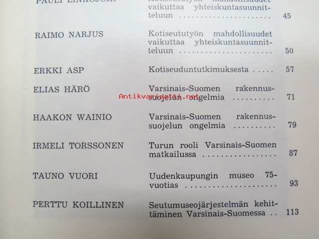Varsinais-Suomen maakuntakirja 23, sis. mm. seur. artikkelin; Tauno Vuori - Uudenkaupungin kulttuurihistoriallisen museon 75-vuotisvaiheet, Nykyaikainen kotiseututyö, Kotiseuduntutkimuksesta, Varsinais-Suomen rakennussuojelun ongelmia, ym.