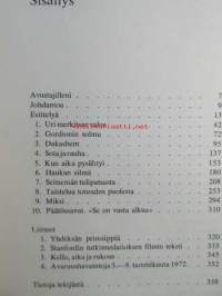 | Saatavilla | 1 kpl | | Julkaisuvuosi | 1974 | | Sivuja | 360 | | Kunto | K3 | | Kansipaperi K2 muutamia repeytymiä, katso kuvista tarkemmin | | Sidonta/painoasu | Sidottu (kansipaperit) | | ISBN | 951-0-06375-4 | | Kielet | Suomi |