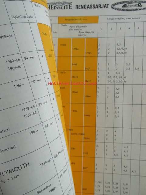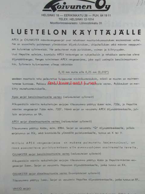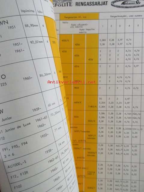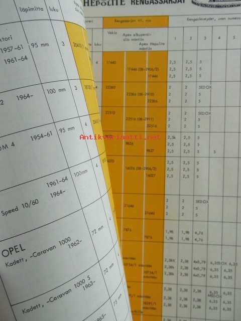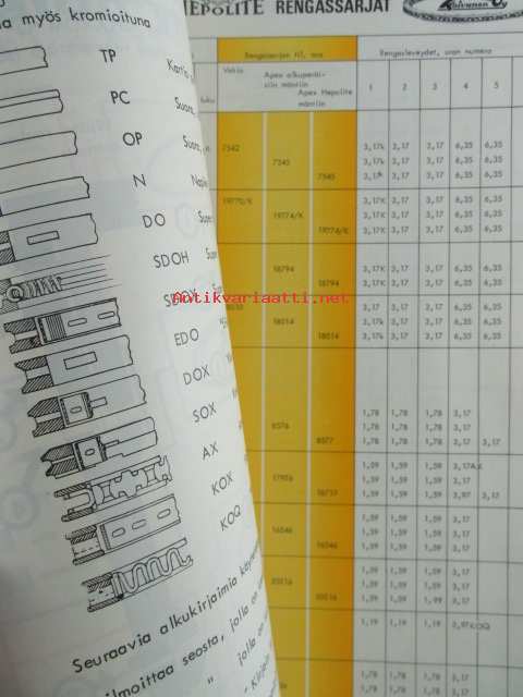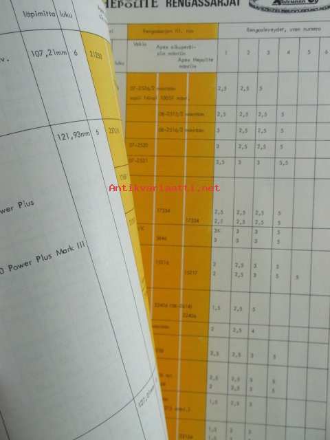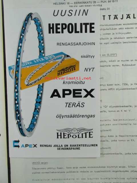 Apex teho- ja vakio rengassarjat mäntäsarjoille