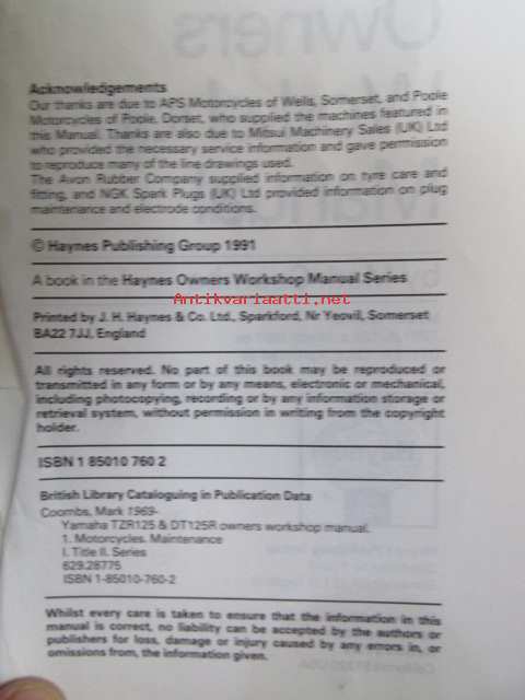 Yamaha TZR125 & DT125R 1987 to 1991 124cc - Owner´s Workshop Manual - Omistajan huolto-ohjekirja