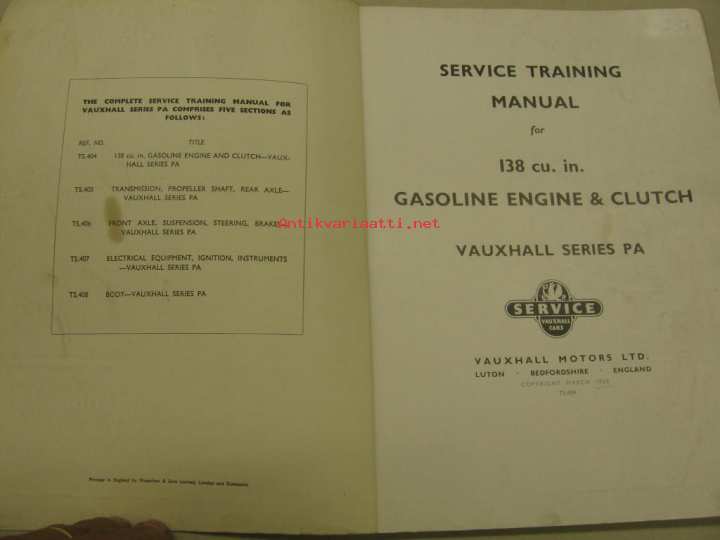 Vauxhall Service Training Manual Series PA 138 cu.in.; Gasoline engine & clutch