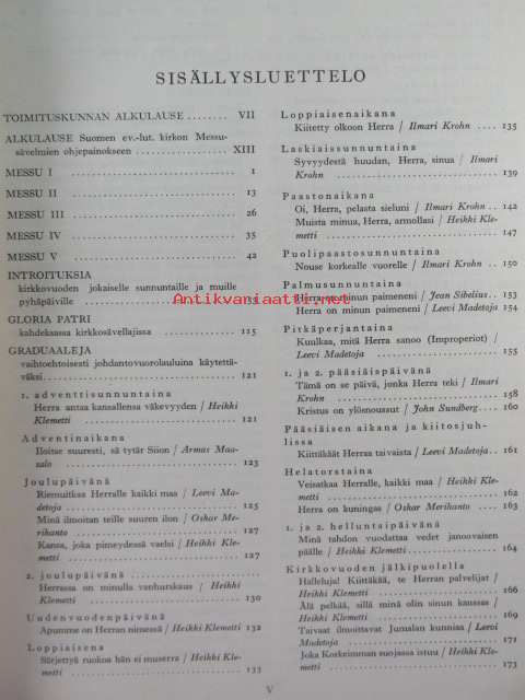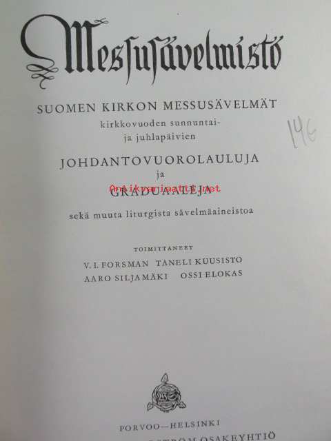 Messusävelmistö - Suomen kirkon messusävelmät, kirkkovuoden sunnutai- ja juhlapäivien johdantovuorolauluja ja graduaaleja sekä muuta liturgista sävelmäaineistoa.