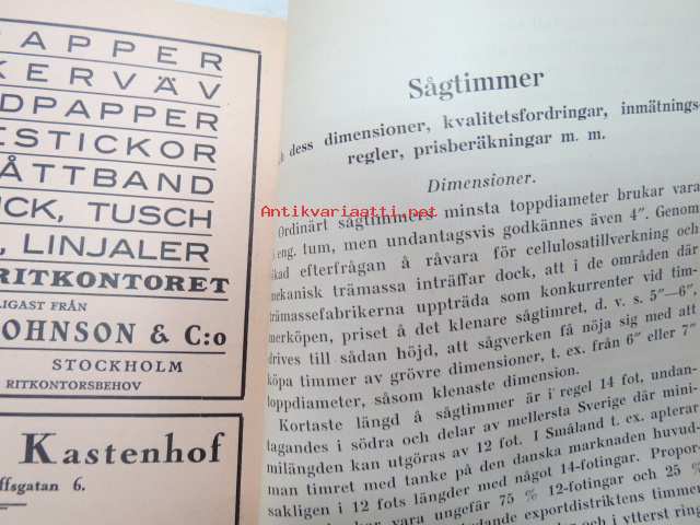 Edbergs trävarubok -puutavaramiehen käsikirja ruotsiksi