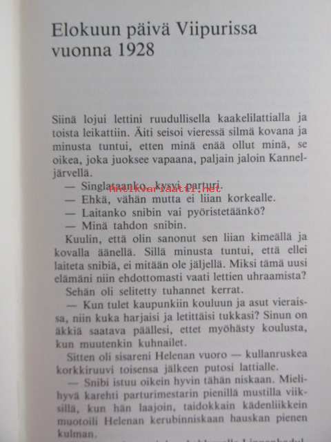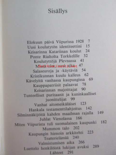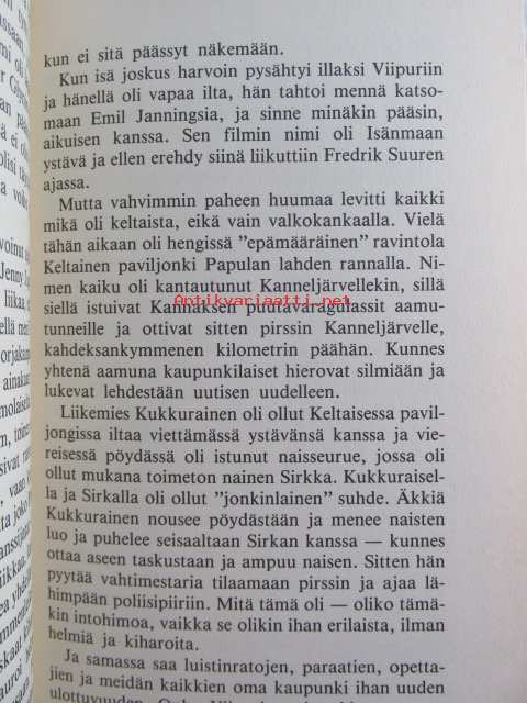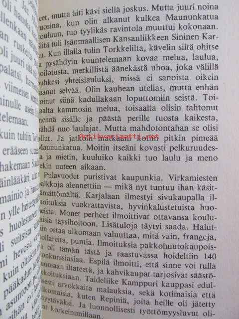| Saatavilla | 1 kpl | | Julkaisuvuosi | 1984 | | Sivuja | 291 | | Painos | 1. | | Kunto | K2 | | Sidonta/painoasu | Sidottu (kansipaperit) | | ISBN | 951-30-6149-3 | | Kielet | Suomi |