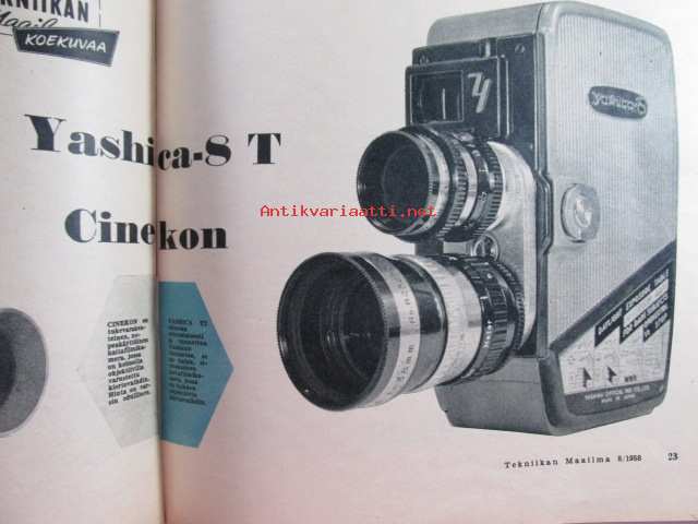 Tekniikan maailma 1958 nr 8, sis. mm. seur. artikkelit / kuvat / mainokset; Stereofonia, Koeajossa Hopeasiipi - Helkaman Hopeasauma mopo, Yashica-8 T ja Cinekon koekuvauksissa, Citroen ID 19 koeajossa, Muotokuva auringosta, Epäkeskomoottori, Ydinvoimalla eteenpäin, katso sisältö kuvista tarkemmin, 21 x 30 cm.