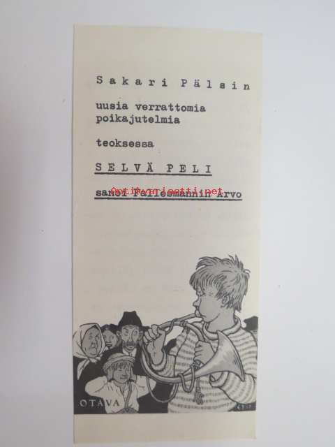 Sakari Pälsin uusia verrattomia poikajutelmia teoksessa "Selvä peli sanoin Fallesmannin Arvo" -mainospainate