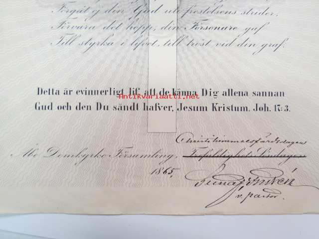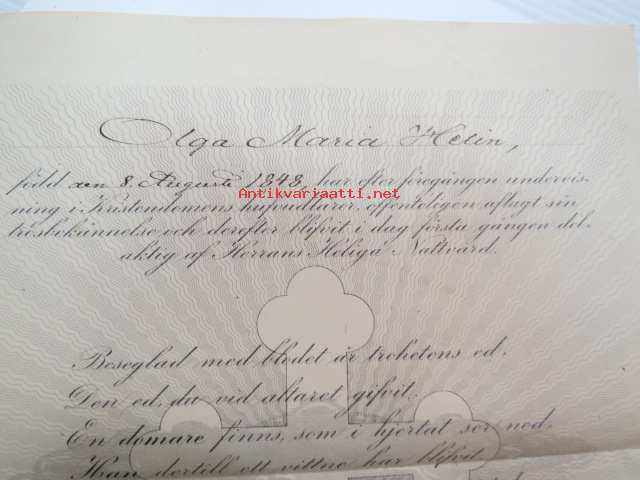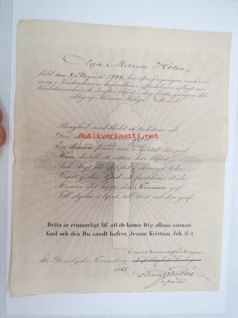 Olga Maria Helin, rippikoulutodistus Åbo Domkyrko Församling 1865, ruotsinkielinen