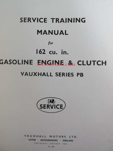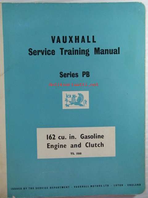 Vauxhall Service Training Manual Series PB / 162 cu. in. Gasoline Engine and Clutch (TS. 588) - Huoltokoulutusopas asentajille