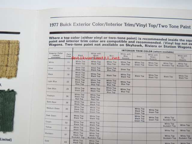 Buick 1977 Color / Trim manual -värimallit, myyjän manuaali