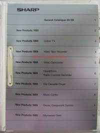 Sharp kuluttajaelektroniikkamyynnin infomappi 1988-89, sis. myyntiesitteitä televisiosta mikroaaltouuneihin, hyvätasoisia valokuvia tuoteista katso sisältö kuvista