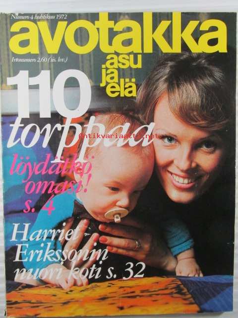 Avotakka 1972 nr 4 sis. mm. seur. artikkelit / kuvat / mainokset; Keittiöpuutarhurin opas, pölynimuritestin tulokset, Automatkalla Euroopassa, Mökkituvan tunnelmassa on perinnettä ja iloista uutta ajattelua, Teflon - älä polta pohjaan, Miss Suomi Harriet Erikson ja IBM:n piiripäällikkö Martti Etelävuori - kotimme on keskivertokoti, Kaunis ja käytännöllinen kylpyhuone, Pyörällä, katso sisältö kuvista paremmin.