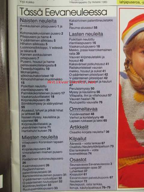 Eeva neule 1983 nr 7, katso sisältö kuvista tarkemmin.