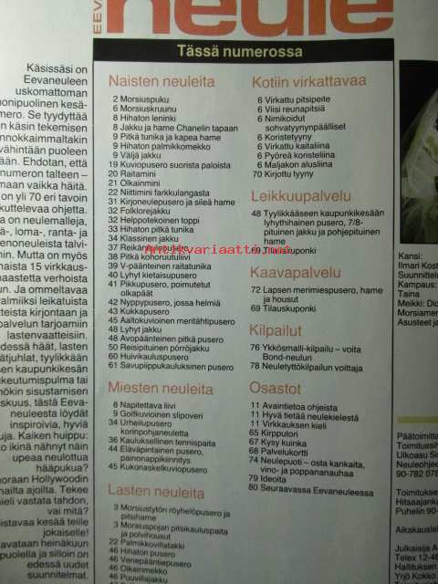 Eeva neule 1987 nr 4, katso sisältö kuvista tarkemmin.