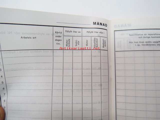 Volvo BM Körjournal -työkoneen ajopäiväkirja, käyttämätön, ruotsinkielinen