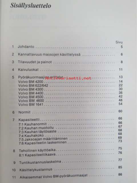 Volvo BM Pyöräkuormaajat - teknistä tietoa, pyöräkuormaajien erittelyt, normit, kapasiteetit. tuntikustannuslaskelmat, aikaisemmat mallit, ym.