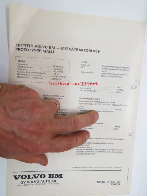 Volvo BM 969 metsätraktori - prototyyppi -myyntiesite