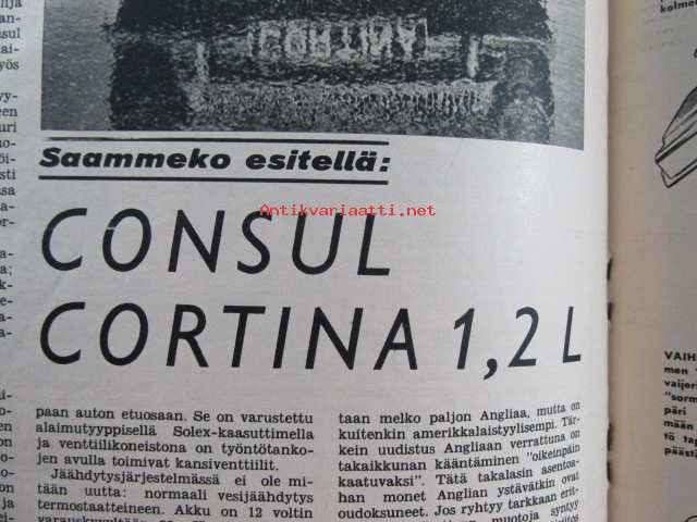 Tekniikan Maailma 1962 nr 11, sisältää mm. seur. artikkelit / kuvat / mainokset; Sähköinen laskutikku, Transistorivahvistin, Esittelyssä Ford Consul Cortina 1,2 L, Koeajossa Hillman Super-Minx ja Minx IIIc "1600", Viisi askelta Pluton valtakuntaan, katso sisältö kuvista tarkemmin.21 x 29 cm.