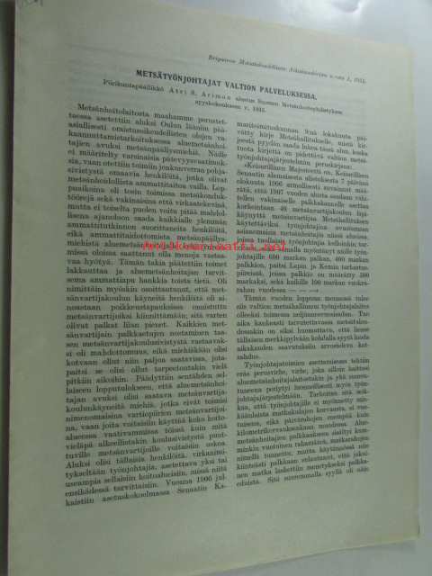 Metsänhoitajat valtion palveluksessa eripainos Metsätaloudellisen aikakauskirjan n:osta 1, 1933