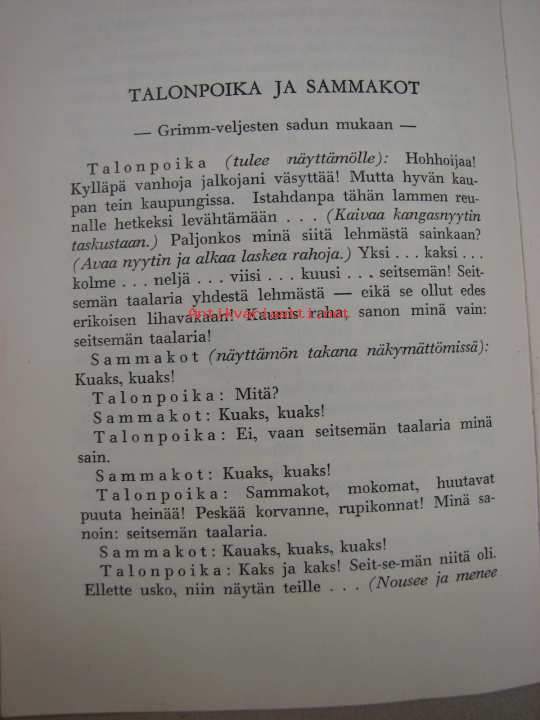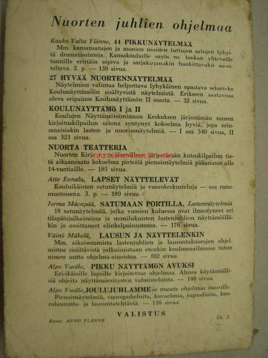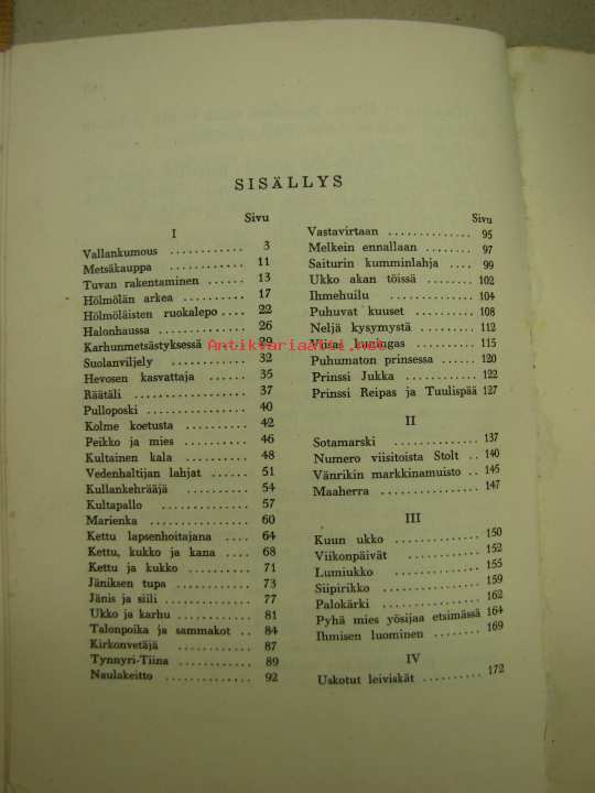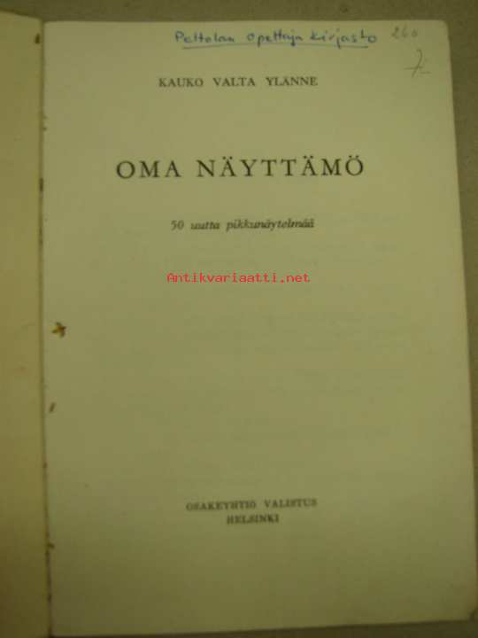 | Saatavilla | 1 kpl | | Julkaisuvuosi | 1961 | | Sivuja | 183 | | Kunto | K3 | | kansi huono, sivut hyvät, ei merkintöjä tms | | Sidonta/painoasu | Nidottu (pehmeäk.) | | Kielet | Suomi |