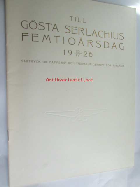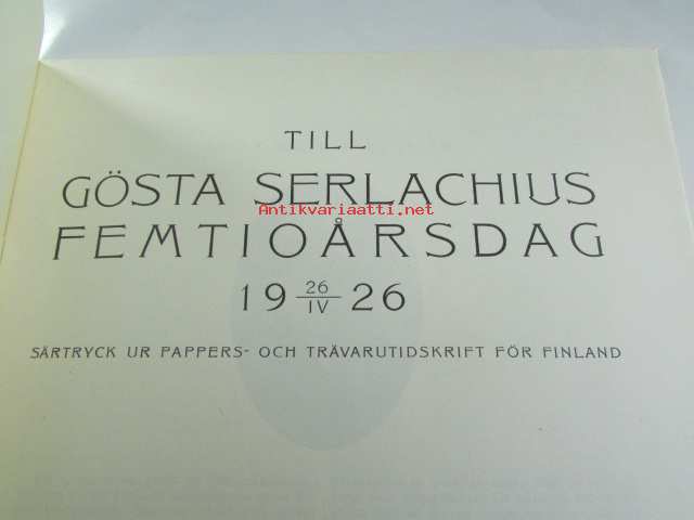 Till Gösta Serlachius femtioårsdag 26.4.1926 särtryck ur Pappers och trävarutidskrift för Finland