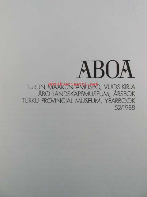 Aboa 52. Turun maakuntamuseon vuosikirja 1988 - Åbo landskapsmuseum, Årsbok 1988