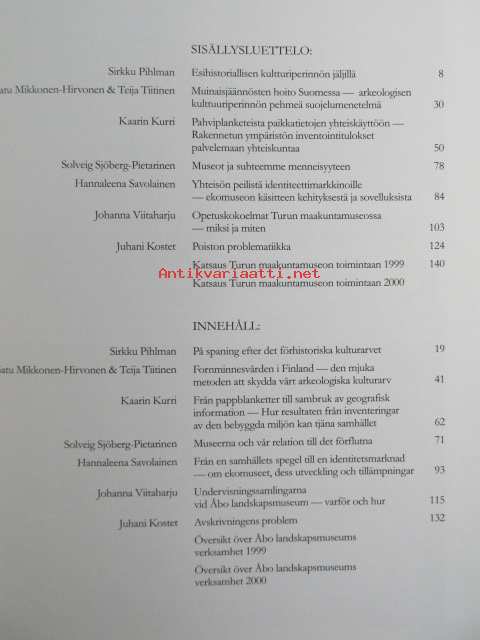 | Saatavilla | 1 kpl | | Julkaisuvuosi | 2000 | | Sivuja | 184 | | Painos | 1 | | Kunto | K3 | | Sidonta/painoasu | Kuvitettu kovakantinen | | ISBN | 951-595-071-6 | | Kielet | Suomi |