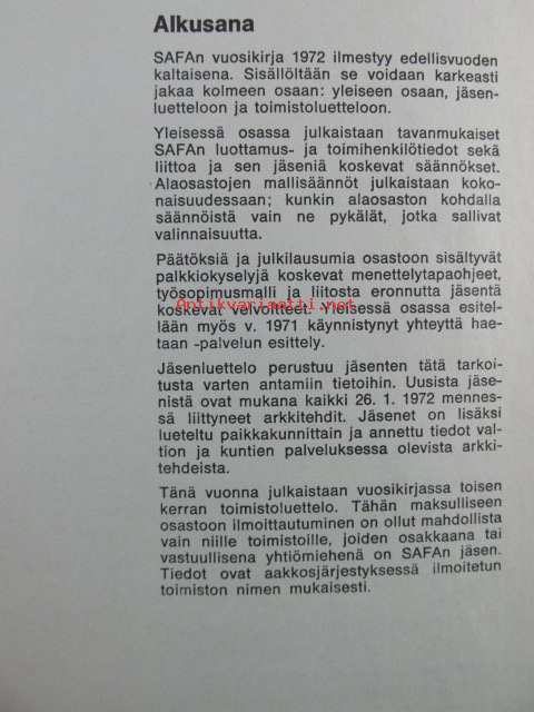 Safa 72 vuosikirja, Suomen Arkkitehtiliitto - Finlands Arkitektförbund r.y. Årsbok