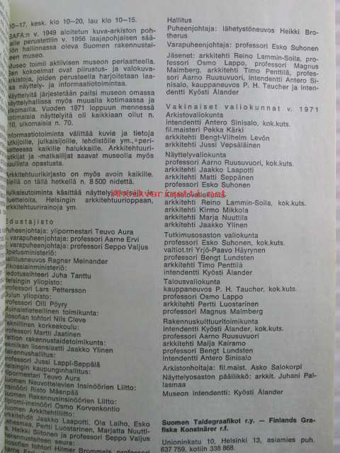 Suomen Arkkitehtiliitto SAFA ja Taiteen Keskustoimikunta, 197215 x 21 cm.