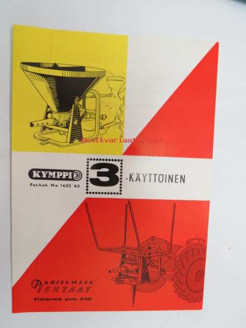 Kymppi 3-käyttöinen heilurityyppinen kylvökone / seiväskaira / seivästeline -myyntiesite