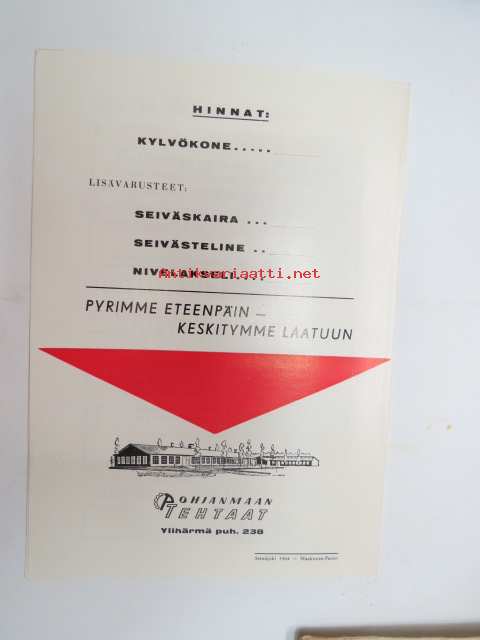 | Saatavilla | 1 kpl | | Julkaisuvuosi | 1964 | | Sivuja | 4 | | Kunto | K3 | | Sidonta/painoasu | Pienpainate | | Kielet | Suomi |