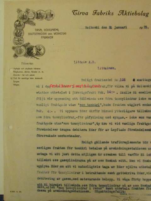 Tirva Fabriks Aktiebolaget, Woikoski 20. januari 1925 -asiakirja
