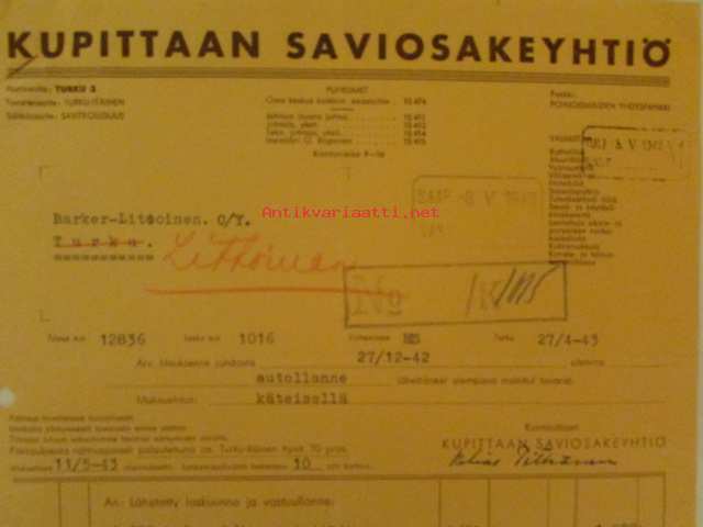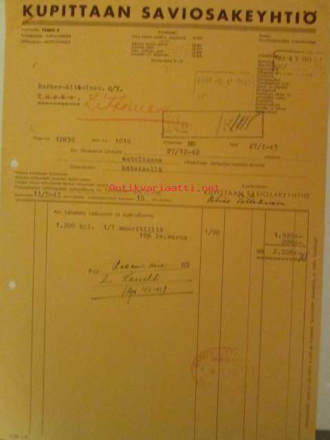 Kupittaan Saviosakeyhtiö, Turku 27.4. 1943 - asiakirja