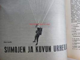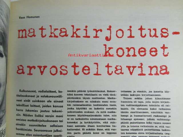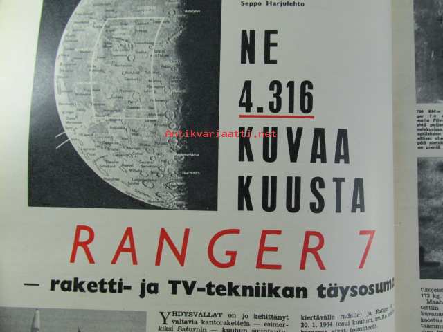 Tekniikan maailma 1964 nr 14, sis. mm. seur. artikkelit / kuvat / mainokset; Ilman vastus - vahingoksi ja hyödyksi, Koekuvissa Pentaflex 8, Rakennamme kesämajan, Kokeilussa siirrettävä autosuoja - tehokas korroosionkehityslaite, Matkakirjoituskoneen arvosteltavina, Metallipalojen henkilöntarkastus - suurempaa turvallisuutta, DKW F 102 koeajossa, N E 4.316 kuva kuusta - Ranger 7 Raketti- ja TV-tekniikan täysosuma, katso sisältö kuvista tarkemmin.21 x 30 cm.