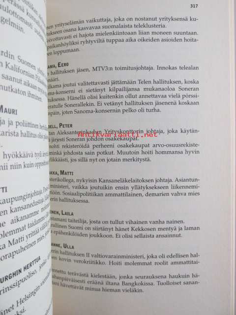 | Saatavilla | 1 kpl | | Julkaisuvuosi | 1999 | | Sivuja | 334 | | Painos | 2. | | Kunto | K3 | | Sidonta/painoasu | Sidottu (kansipaperit) | | ISBN | 951-1-16272-1 | | Kielet | Suomi |