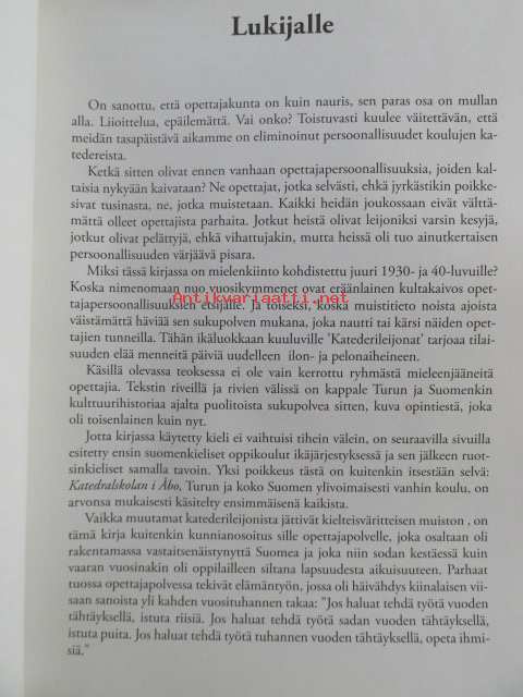 Katederileijonia. Opettajapersoonaallisuuksia Turun Oppikouluissa 1930-ja 1940 -luvuilla. Lärarprofiler i Åbo på 1930-1940 -talet