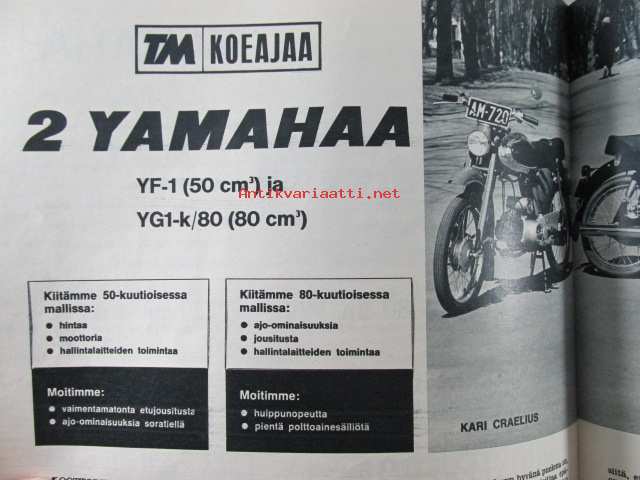Tekniikan maailma 1965 nr 11, sis. mm. seur. artikkelit / kuvat / mainokset; Keveyttä laminoimalla, Koeajossa Yamaha YF-1 50cc ja YG1-K 80cc, Super 8