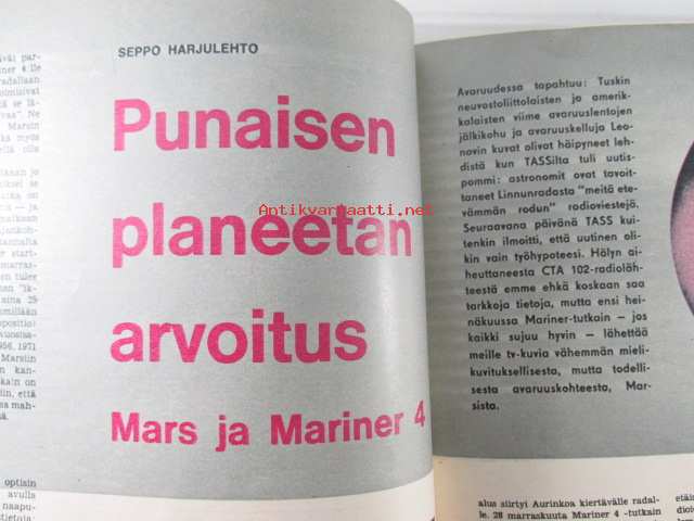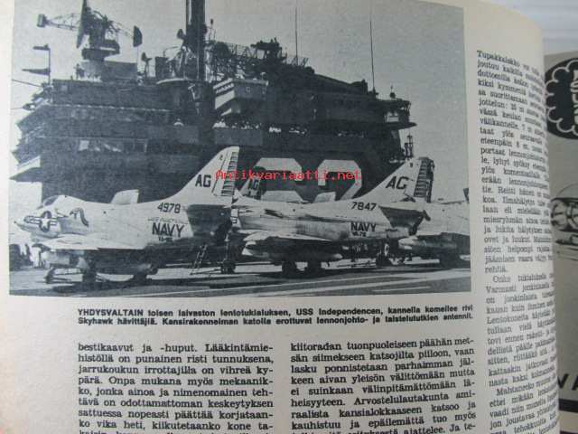 Tekniikan maailma 1965 nr 7, sis. mm. seur. artikkelit / kuvat / mainokset; Uutuus Japanista PMC Gloria 6, Basson rakenne selostus, Helikopteritarjotin Tarvalle - Alouette II - Alouette III, Bell - Hiller - Sikorsky - Westland, Koeajossa NSU Prinz 1000 L, Syvä V-pohja on muotia, Laiva lentokenttänä USS Midway - USS Independencen - Tukialus Eagle, Aiheuttaako automaatio työttömyyttä, Punaisen planeetan arvoitus Mars ja Mariner 4, katso sisältö kuvista tarkemmin.21 x 30 cm.