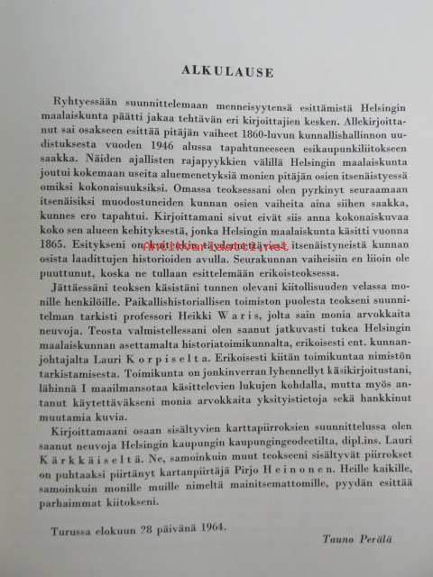 Korpinen Lauri, Perälä Tauno, Helsingin maalaiskunta, 196519 x 25 cm.