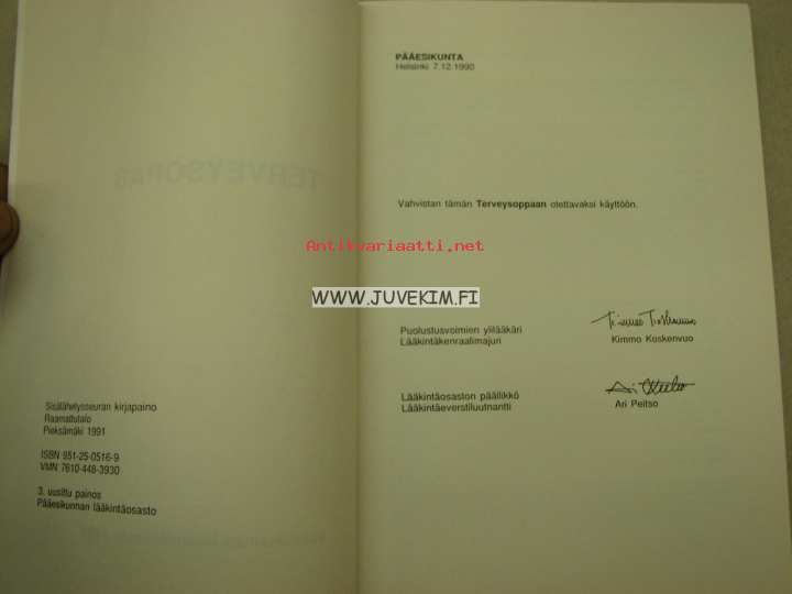 | Saatavilla | 1 kpl | | Julkaisuvuosi | 1991 | | Sivuja | 135 | | Painos | 3. | | Kunto | K3 | | Sidonta/painoasu | Nidottu (pehmeäk.) | | ISBN | 951-25-0516-9 | | Kielet | Suomi |