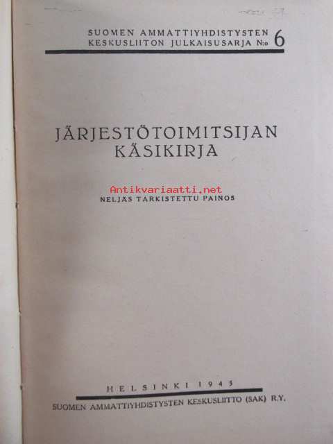 Suomen ammattiyhdistyksen keskusliitto (SAK), 194513 x 19 cm.