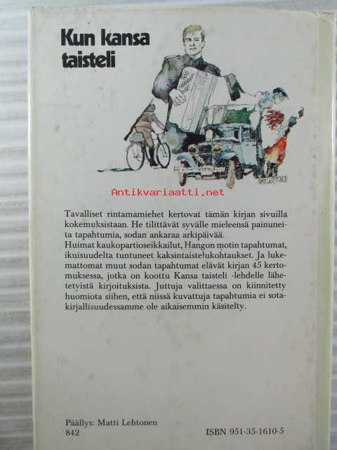 | Saatavilla | 1 kpl | | Julkaisuvuosi | 1977 | | Sivuja | 287 | | Painos | 1. | | Kunto | K3 | | Sidonta/painoasu | Sidottu (kansipaperit) | | ISBN | 951-35-1610-5 | | Kielet | Suomi |