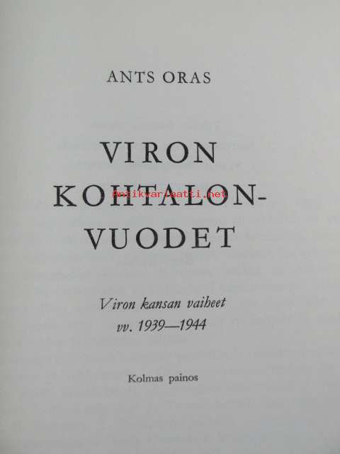 Viron kohtalonvuodet - Viron kansan vaiheet vv. 1939 - 1944