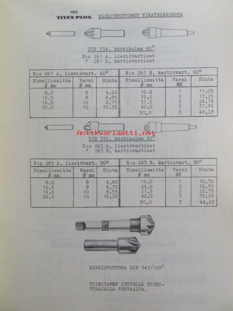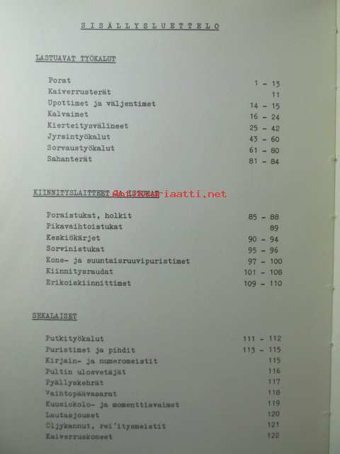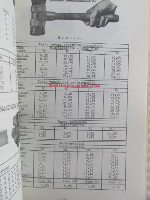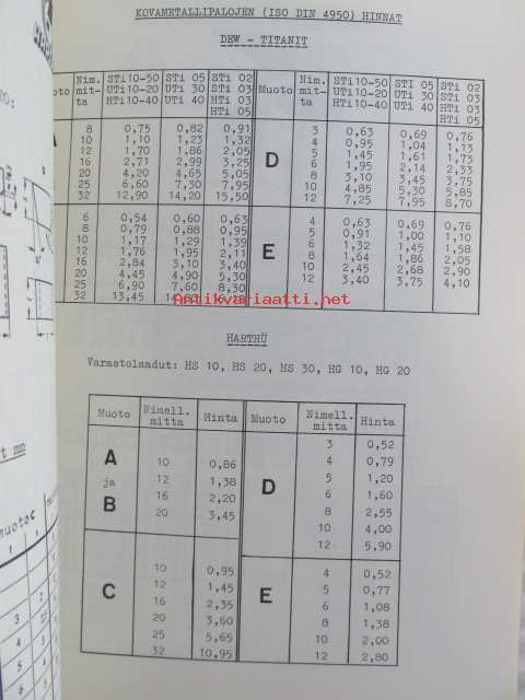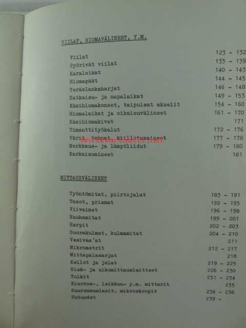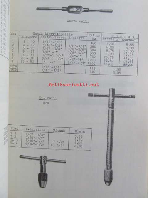 Työkaluosasto Varastoluettelo 11.64 hinnasto
