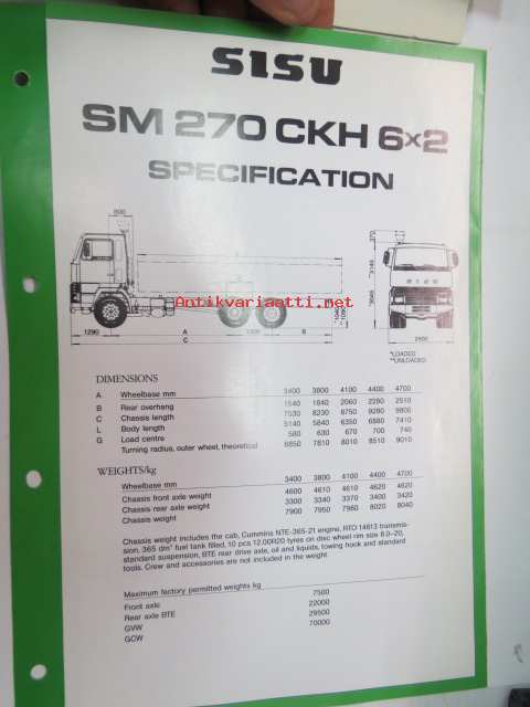 Sisu SM 270 CKH 6X2 Specification -tekniset tiedot (englanniksi)