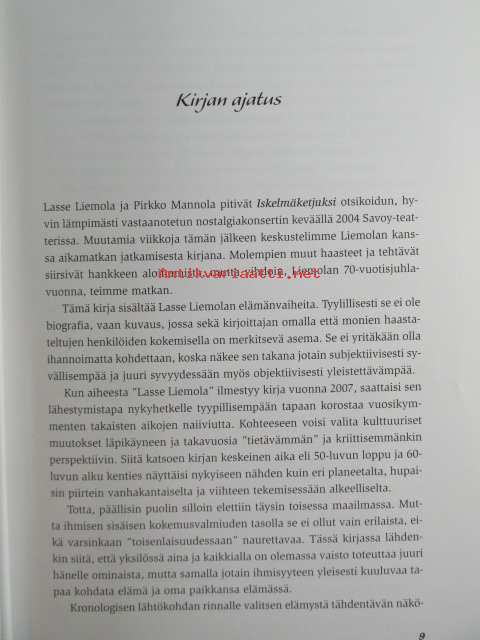 | Saatavilla | 1 kpl | | Julkaisuvuosi | 2007 | | Sivuja | 317 | | Kunto | K3 | | Sidonta/painoasu | Sidottu (kansipaperit) | | ISBN | 978-952-57089-08-0 | | Kielet | Suomi |