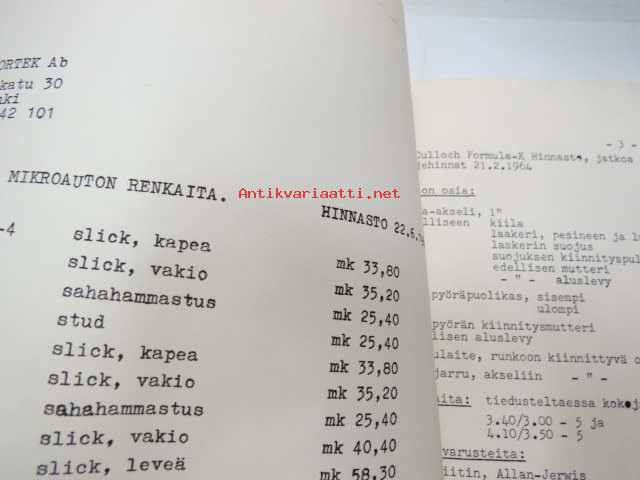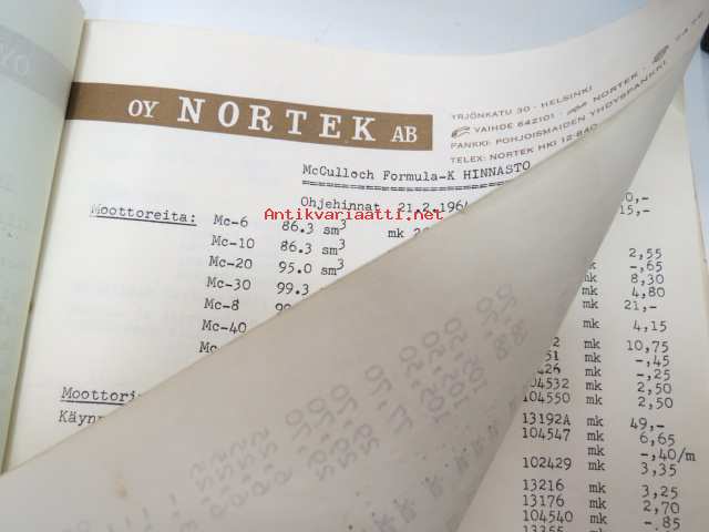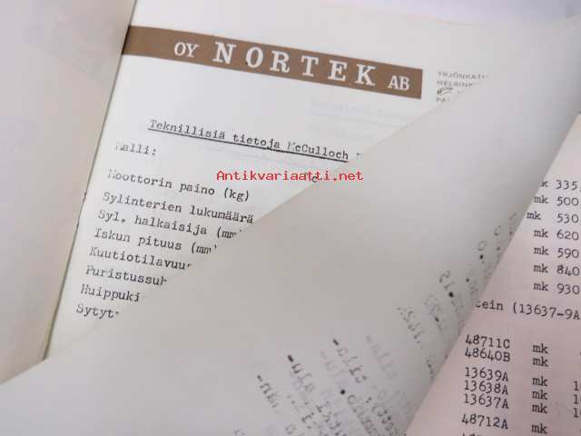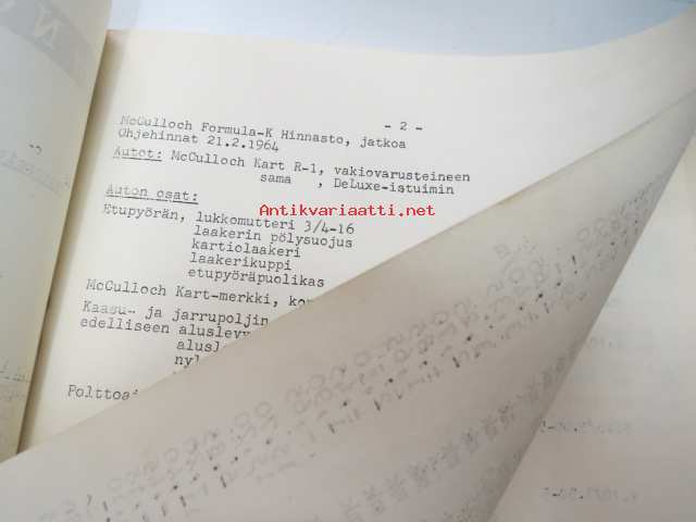 McCulloch formula - K mikroautoja, rungon osia, moottoreita, lisätarvikkeita -myyntiesite / hinnasto