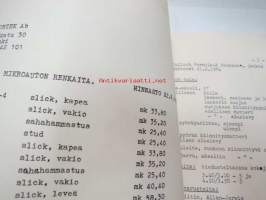 | Saatavilla | 1 kpl | | Julkaisuvuosi | 19?? | | Sivuja | 6 | | Kunto | K2 | | Kulunut | | Sidonta/painoasu | Pienpainate | | Kielet | Suomi |