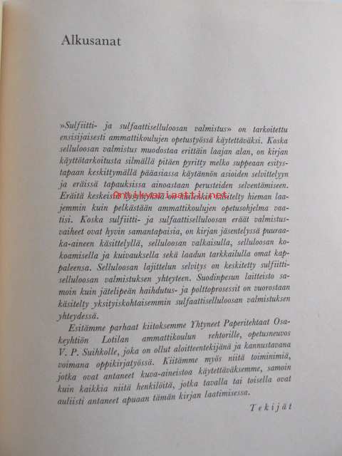 Sulfiitti- ja sulfaattiselluloosan valmistus "Tikkurillan ammattikoulun kirjasto leima"