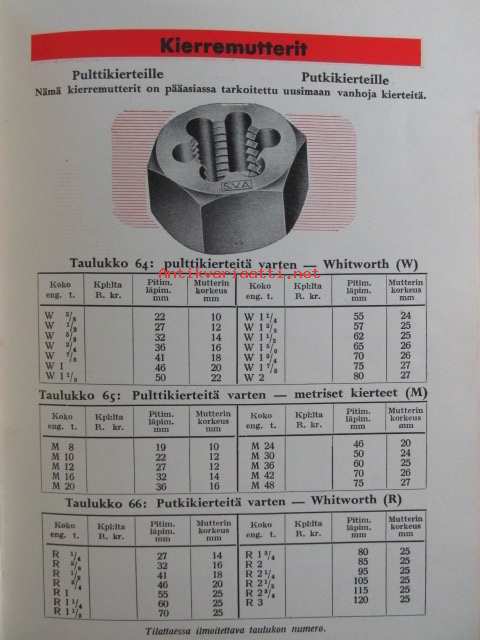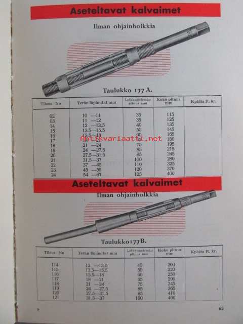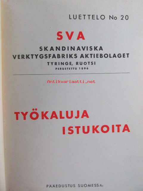 SVA Työkaluja istukoita, luettelo nr 20 - Skandinaviska Verktygsfabriks Aktiebolaget